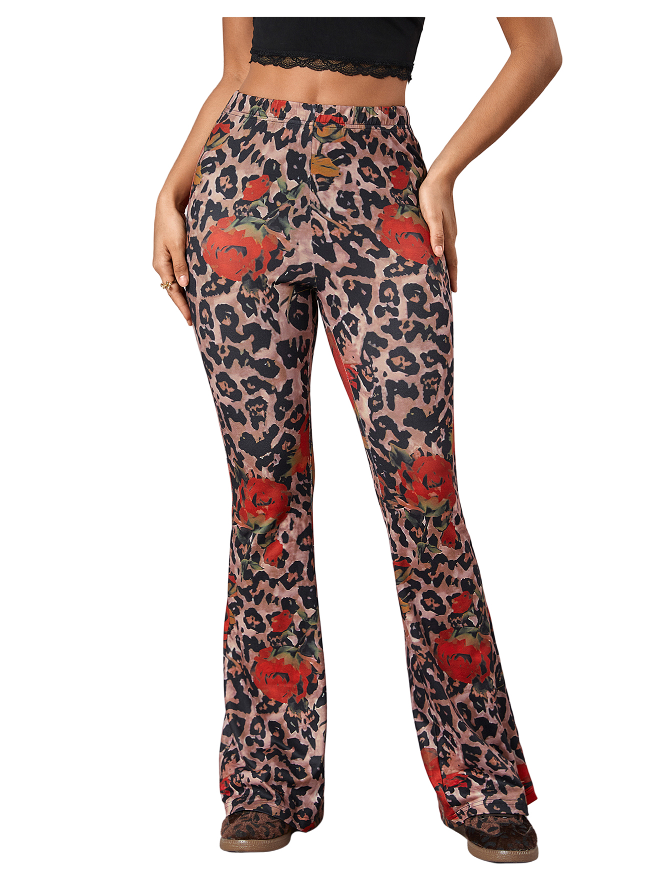 • WDIRARA Women’s Snakeskin High Waist Casual Flare Bell Bottom Stretch Long Pants Red Leopard