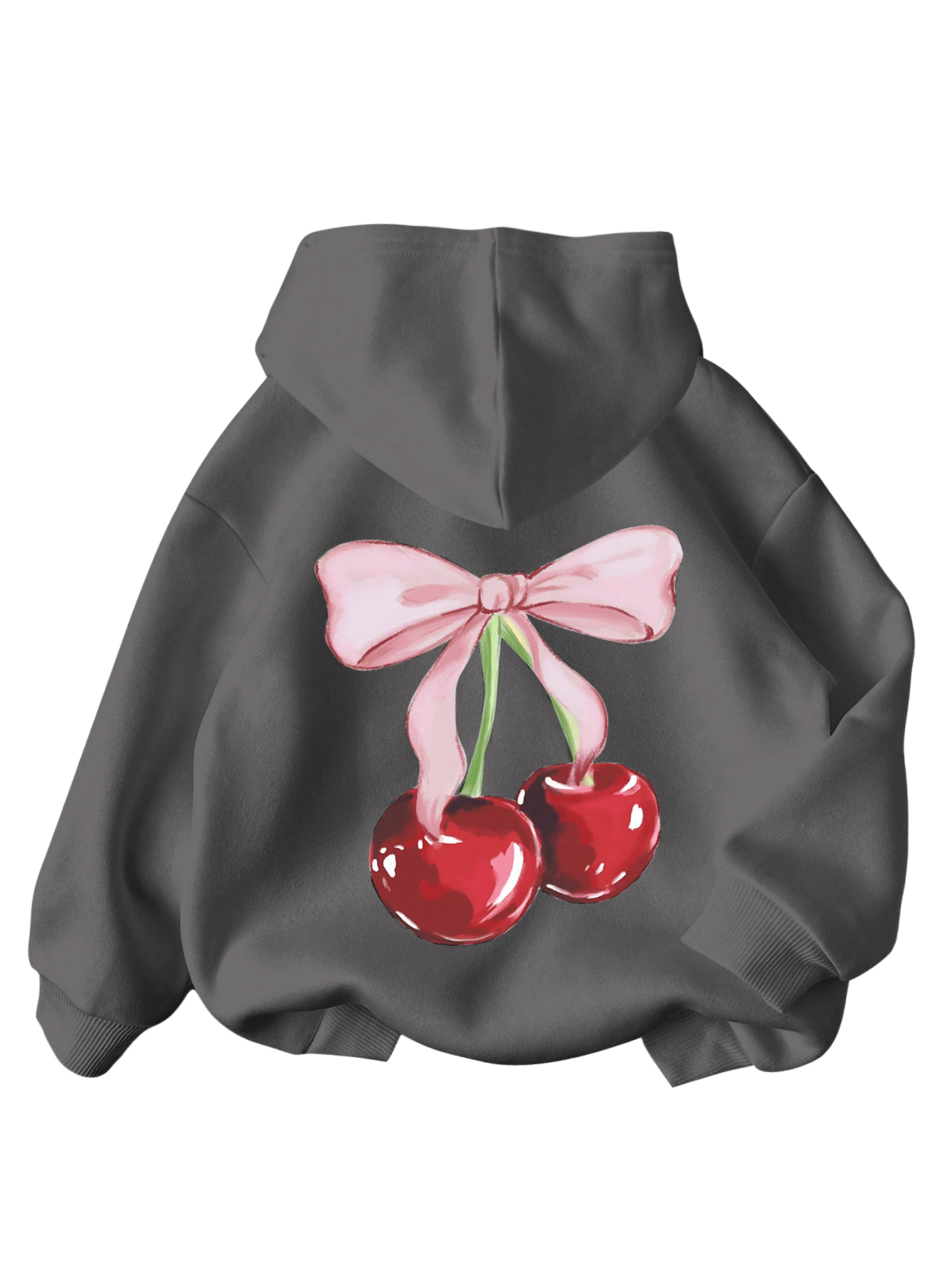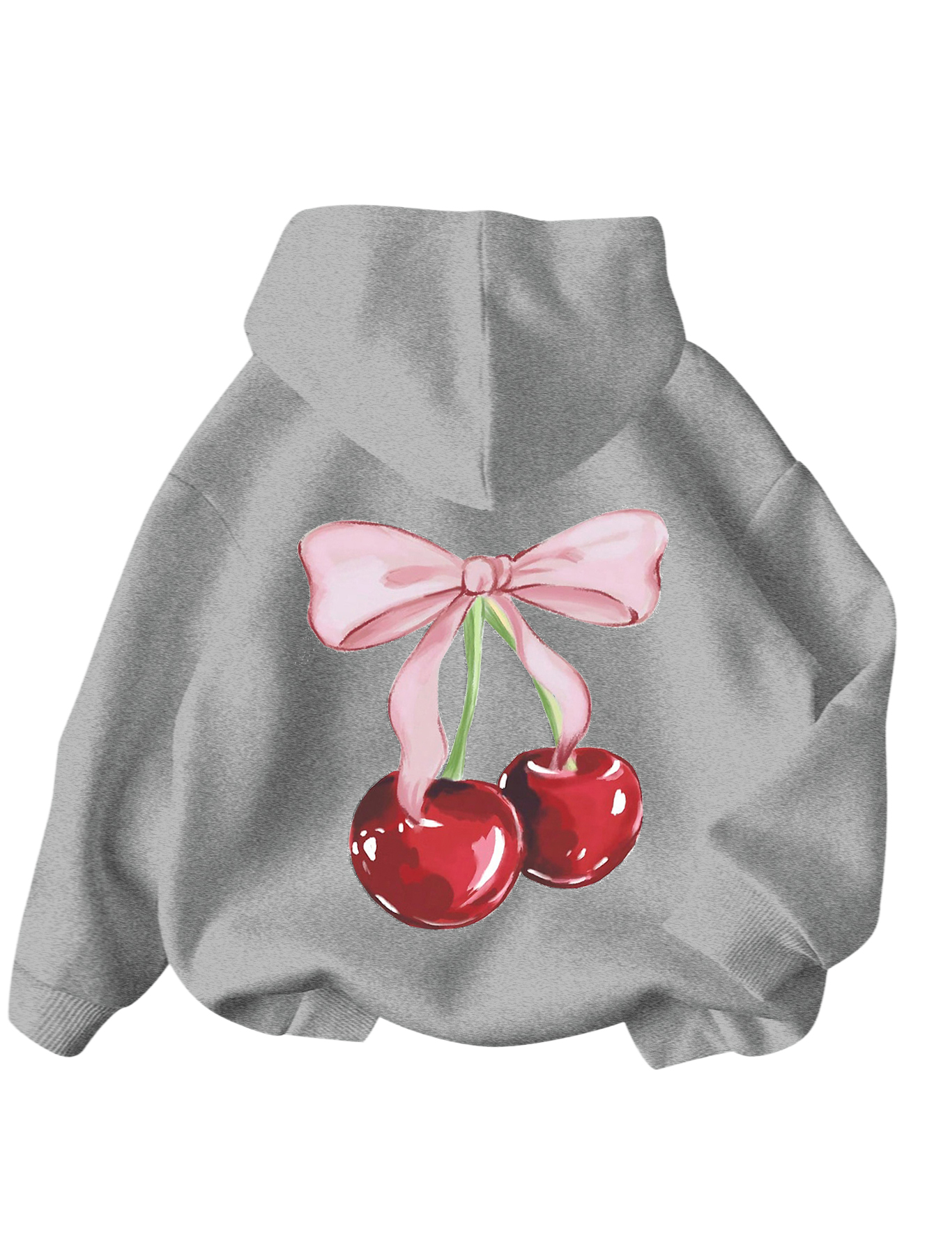 WDIRARA Girl’s Cherry Graphic Hoodie Long Sleeve Hooded Sweatshirt Cute Pullovers Tops Grey Bow