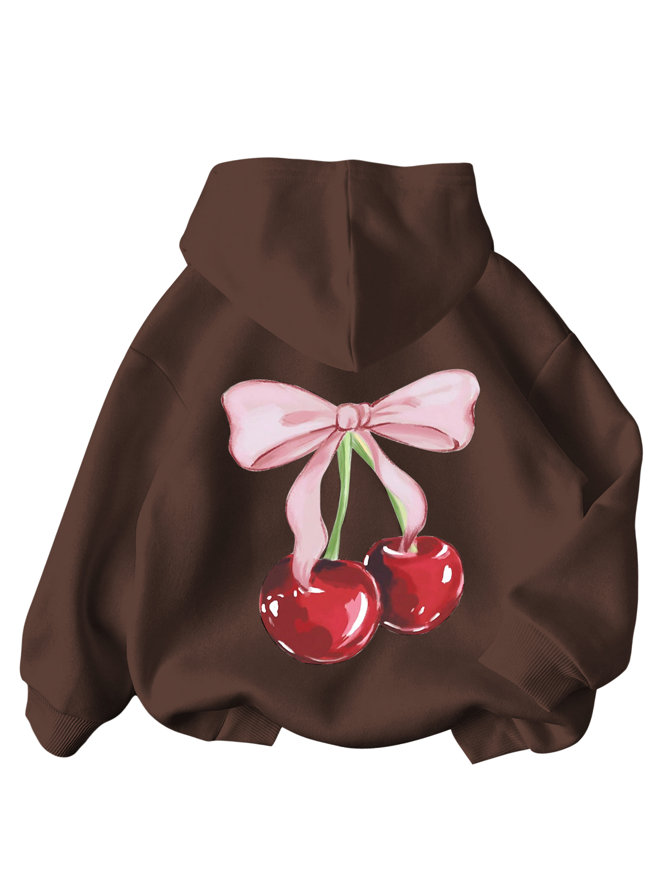 WDIRARA Girl’s Cherry Graphic Hoodie Long Sleeve Hooded Sweatshirt Cute Pullovers Tops Brown Bow