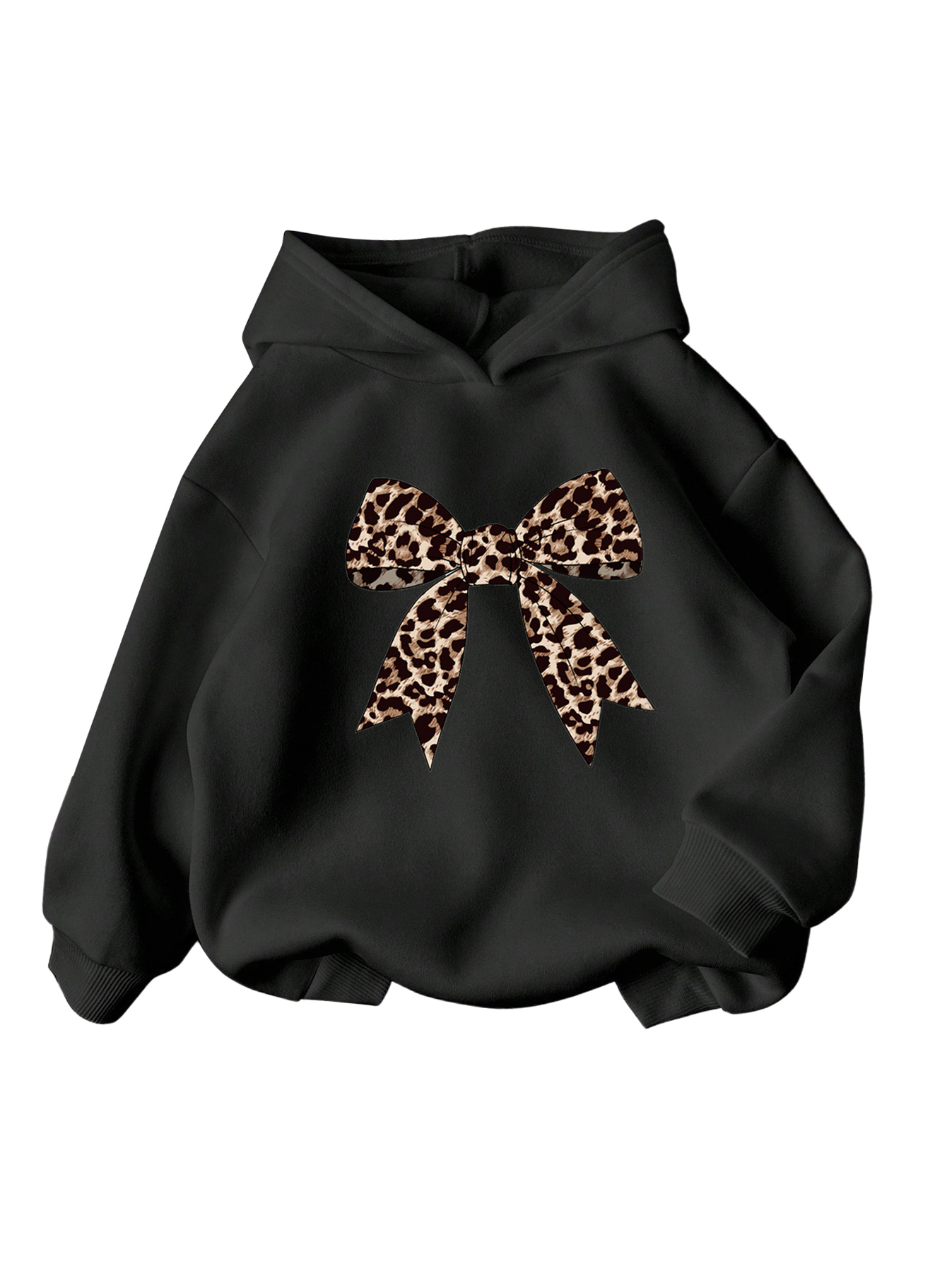 WDIRARA Girl’s Cherry Graphic Hoodie Long Sleeve Hooded Sweatshirt Cute Pullovers Tops Black Leopard Bow