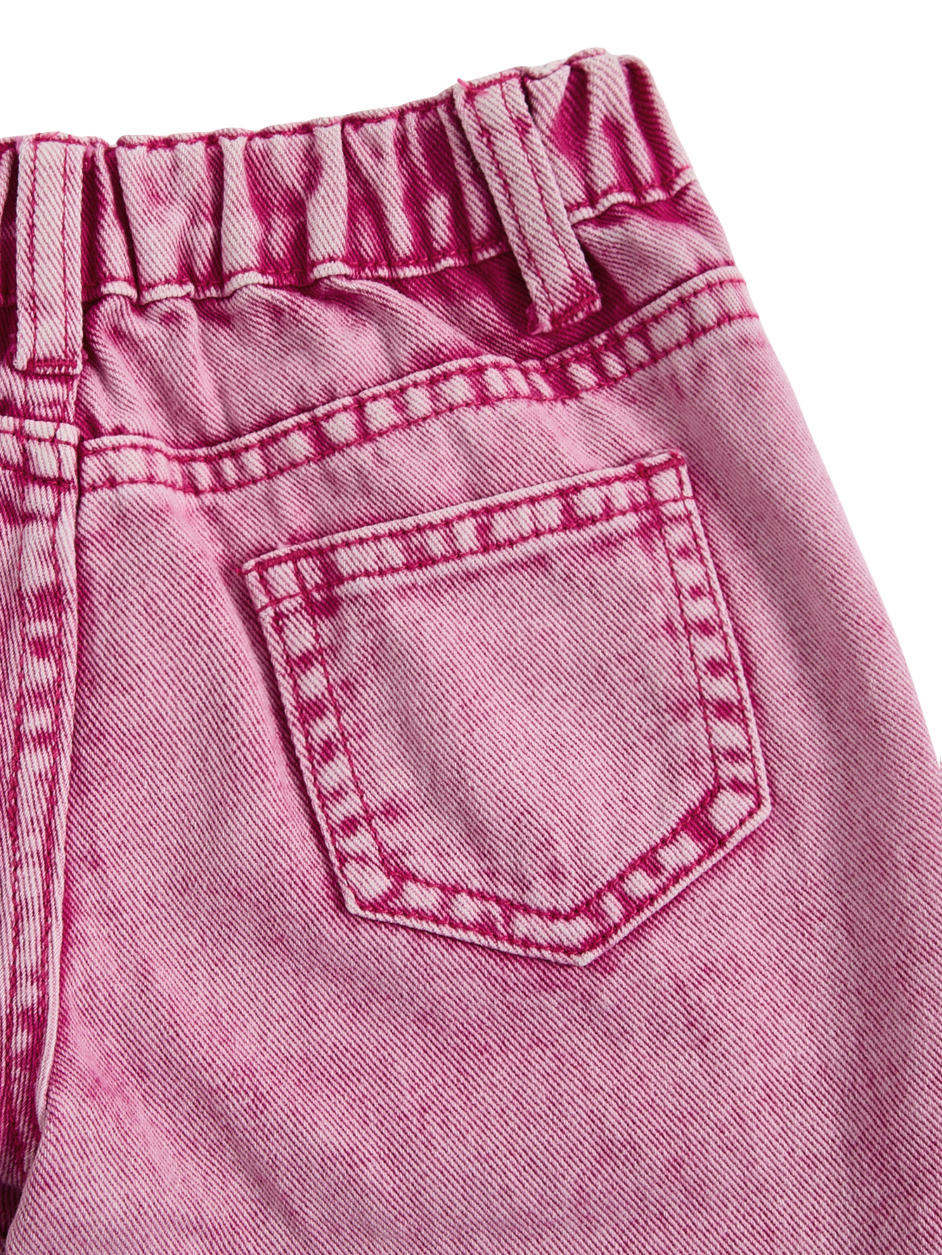 WDIRARA Girl’s Star Patchwork Baggy Jeans Y2k Elastic Waist Straight Leg Denim Pants Pink