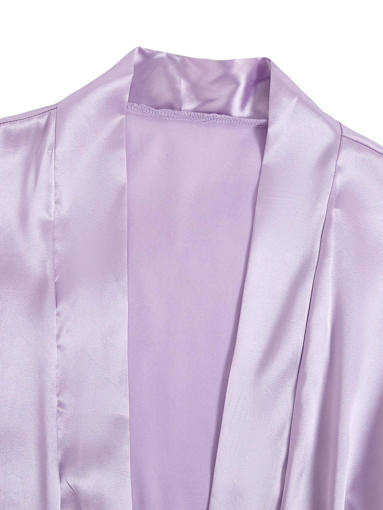 Silk Satin Pajamas Set 4pcs Lingerie Floral Lace Cami Sleepwear with Robe Mauve