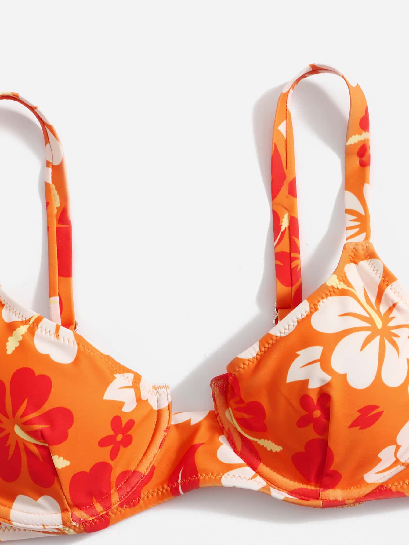WDIRARA Women’s Floral Print Underwire Bikini Swimsuit 2 Piece Bathing Suits Swimwear Orange